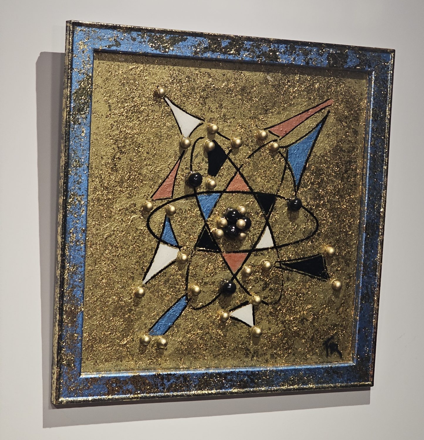 Technique: Acrylique et posca sur toile tendue résine epoxy et feuille d’or
