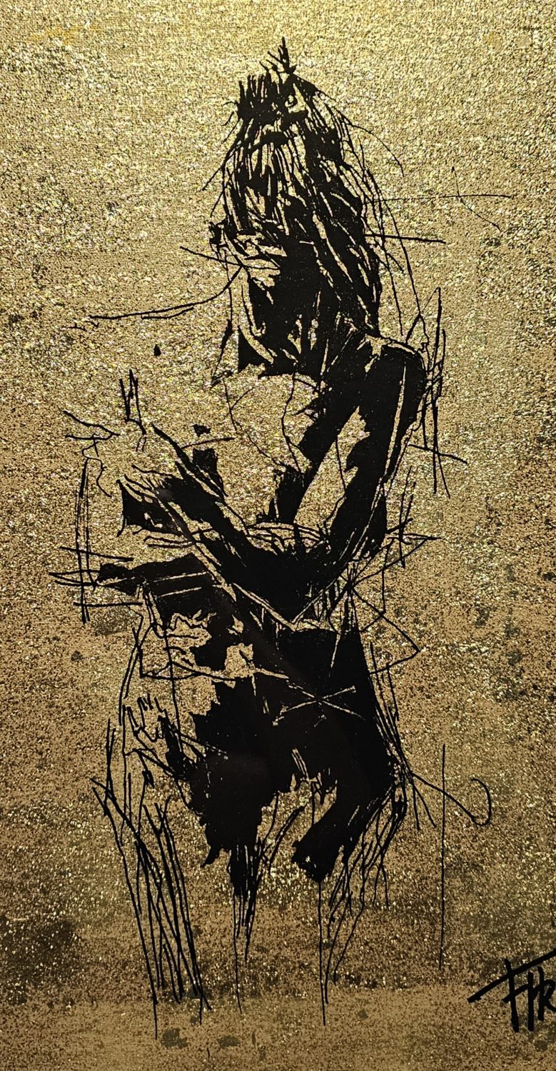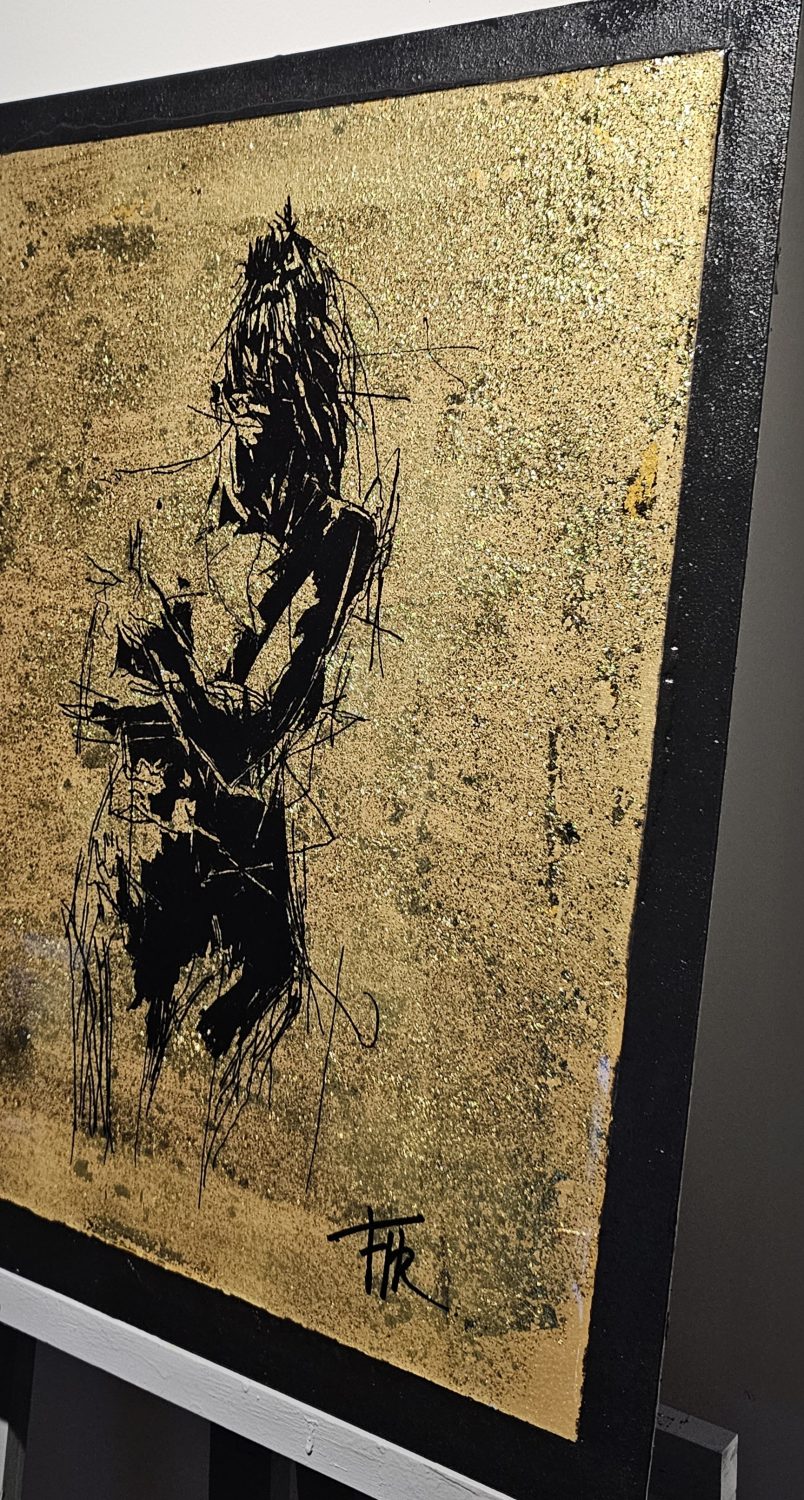 Technique: Peinture Acrylique sur carton feuilles d’or et résine époxy