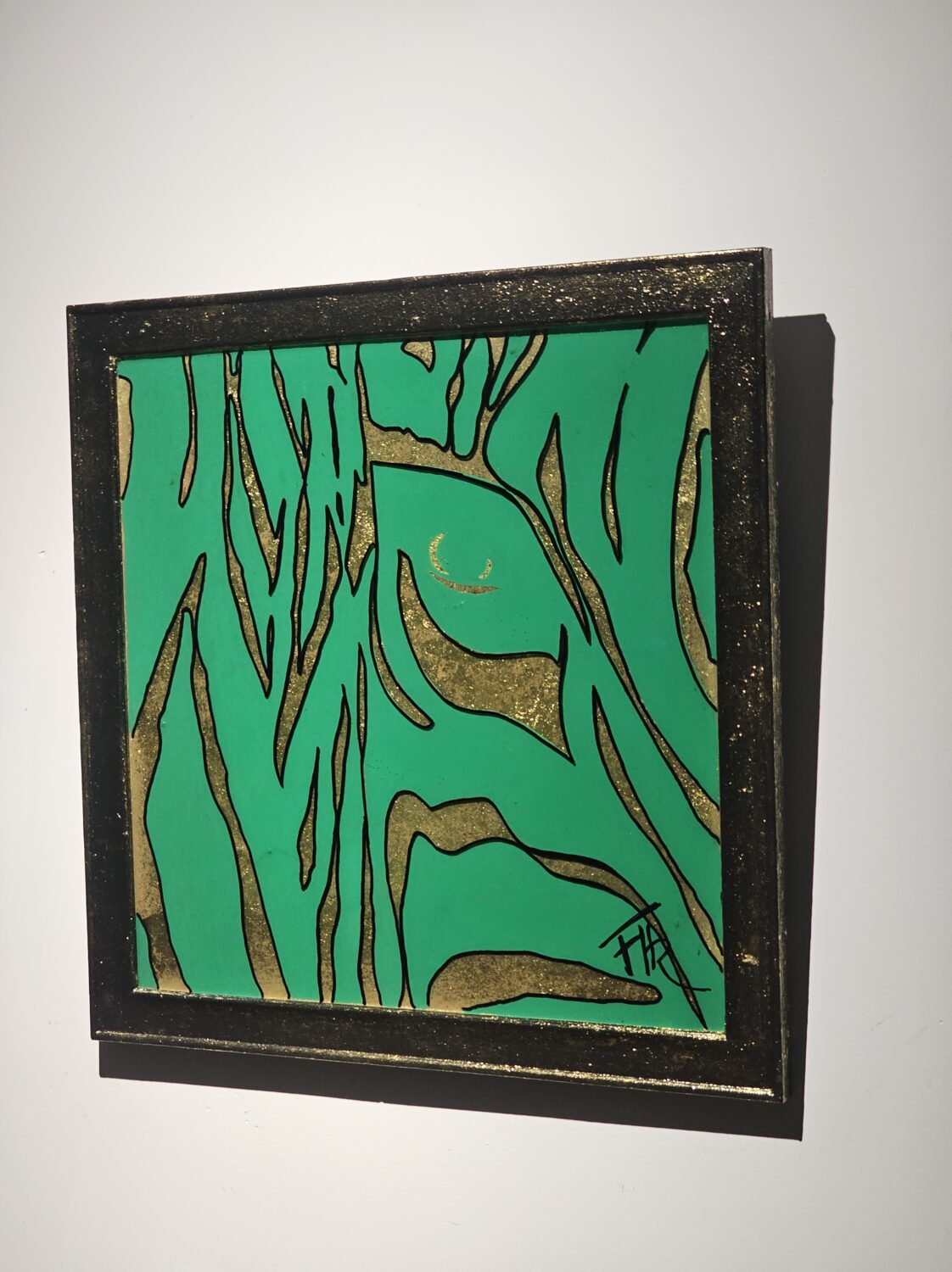 Technique: Acrylique et Posca sur bois, feuilles d’or et résine époxy