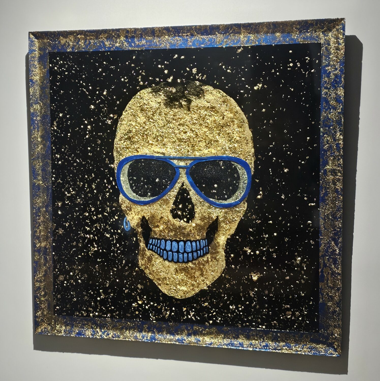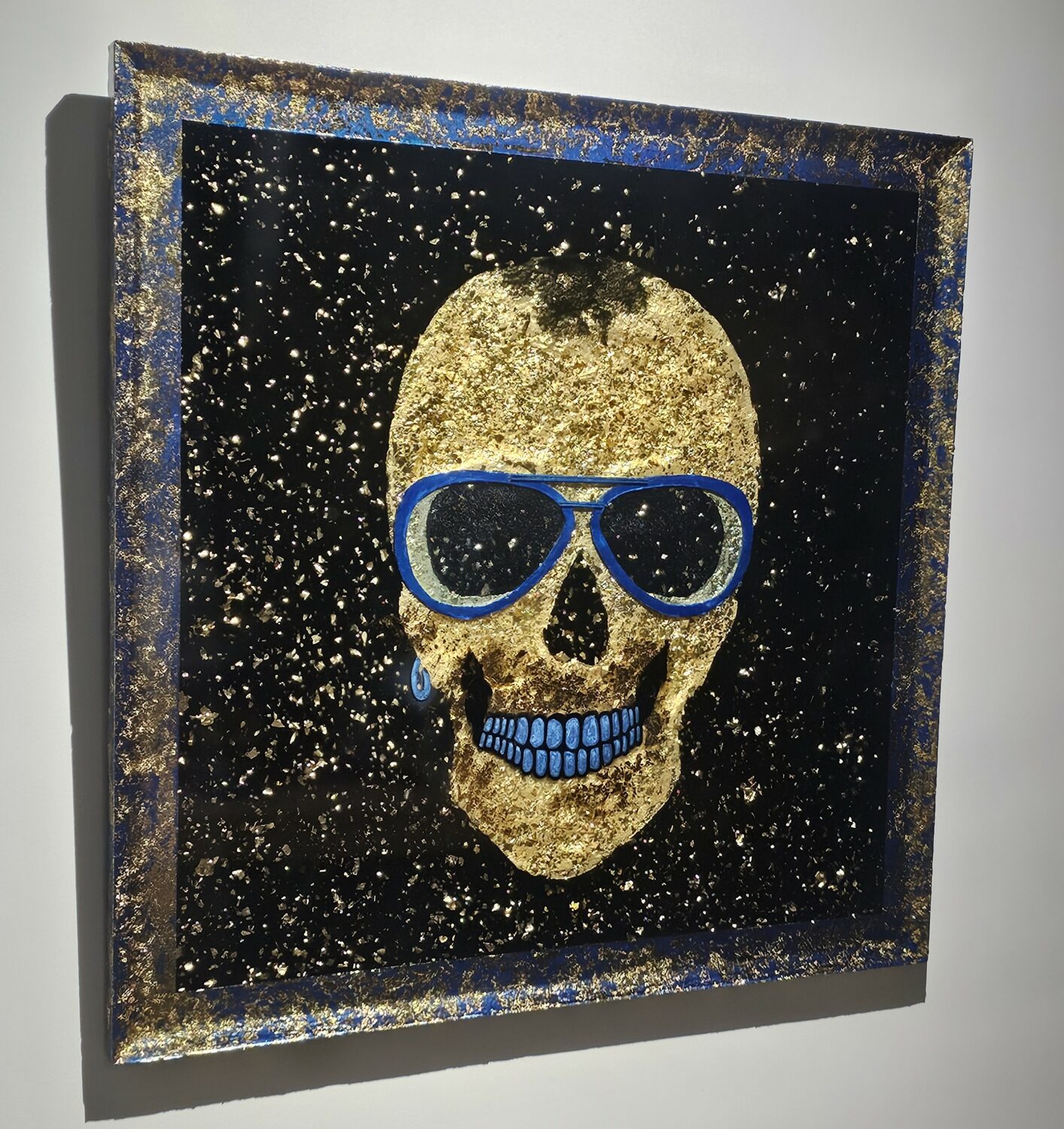 Technique :Acrylique sur toile tendue, traitement époxy et feuilles d’or