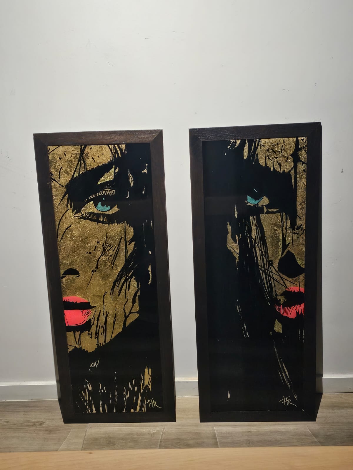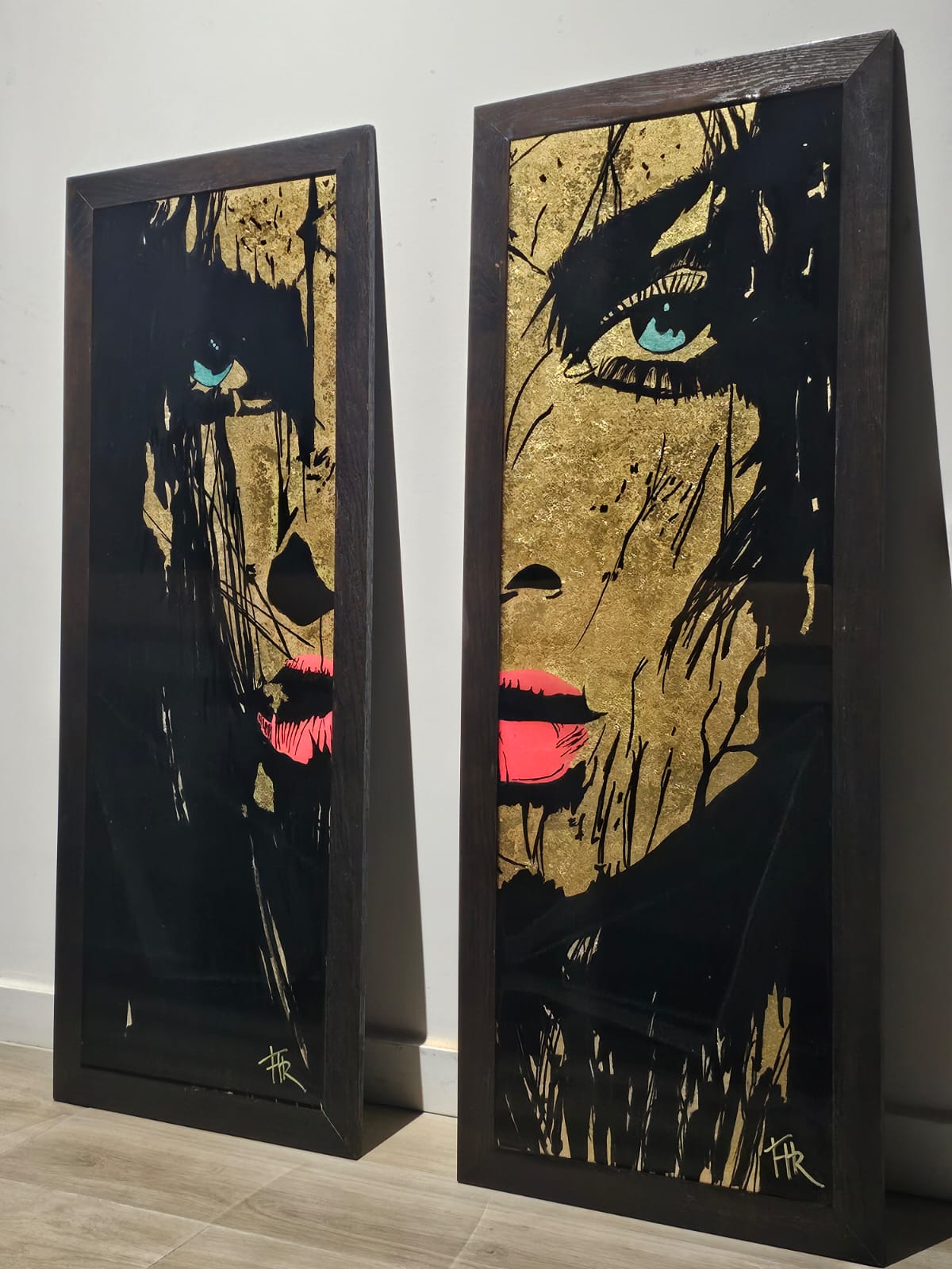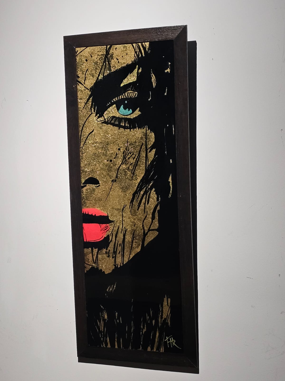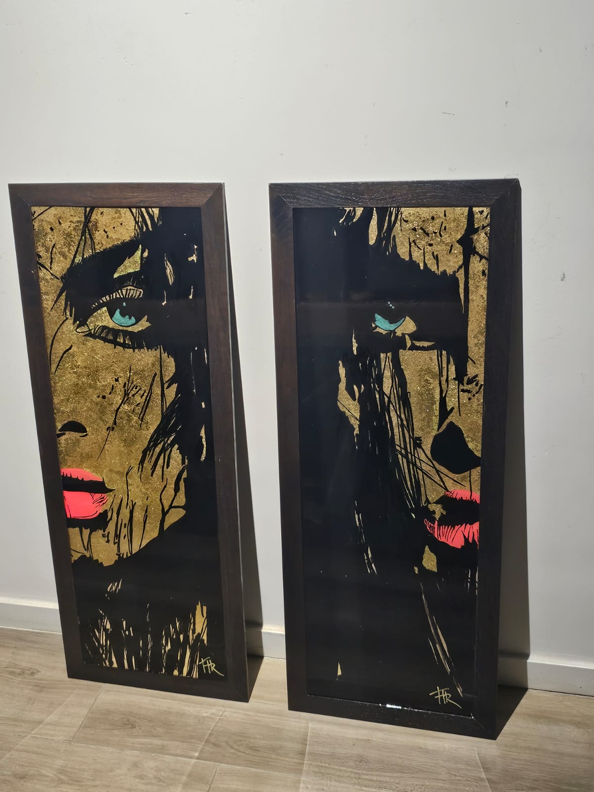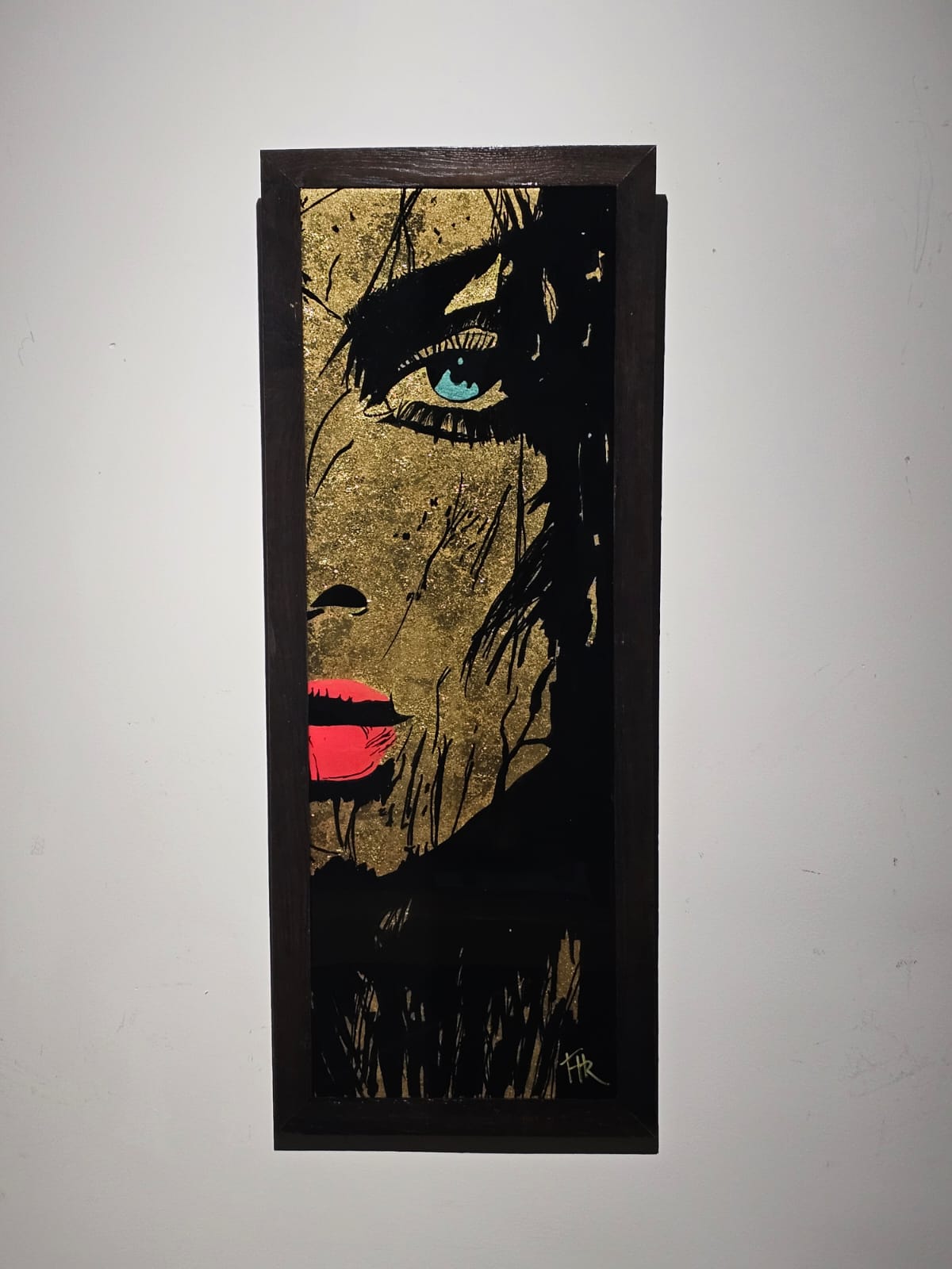 Technique:peinture acrylique et posca feuilles d’or et résine époxy