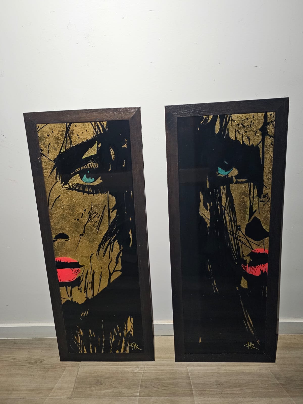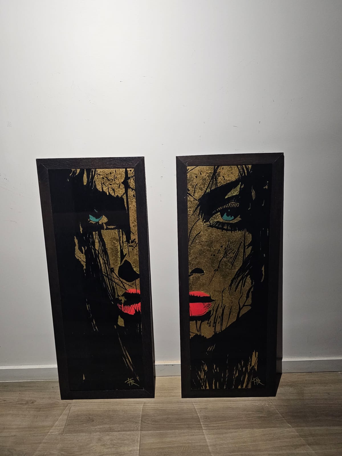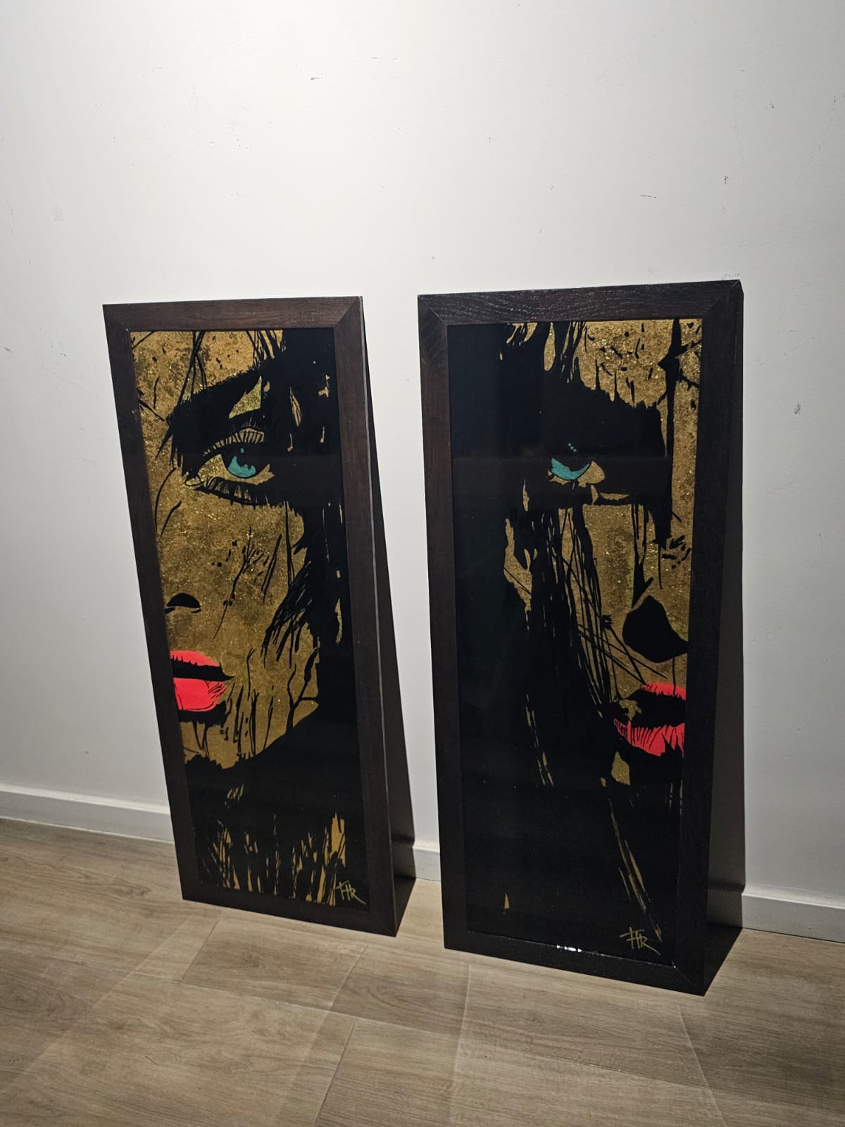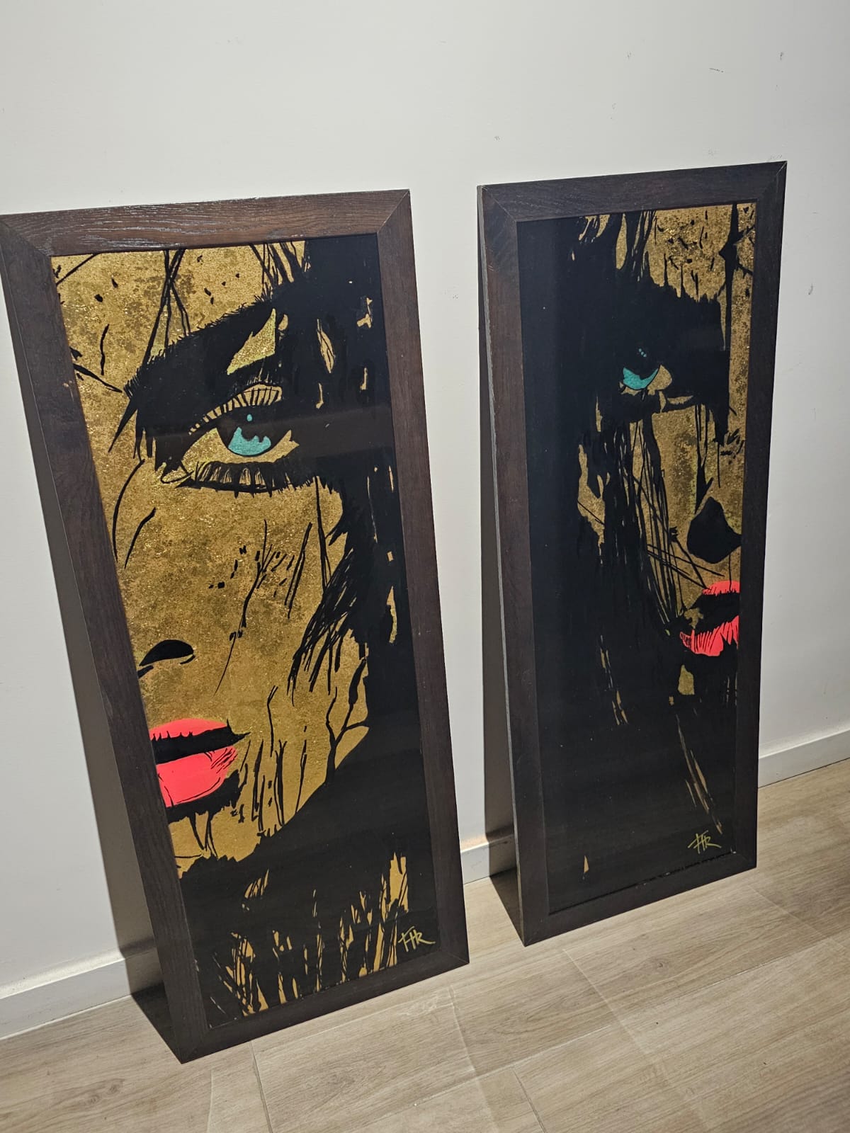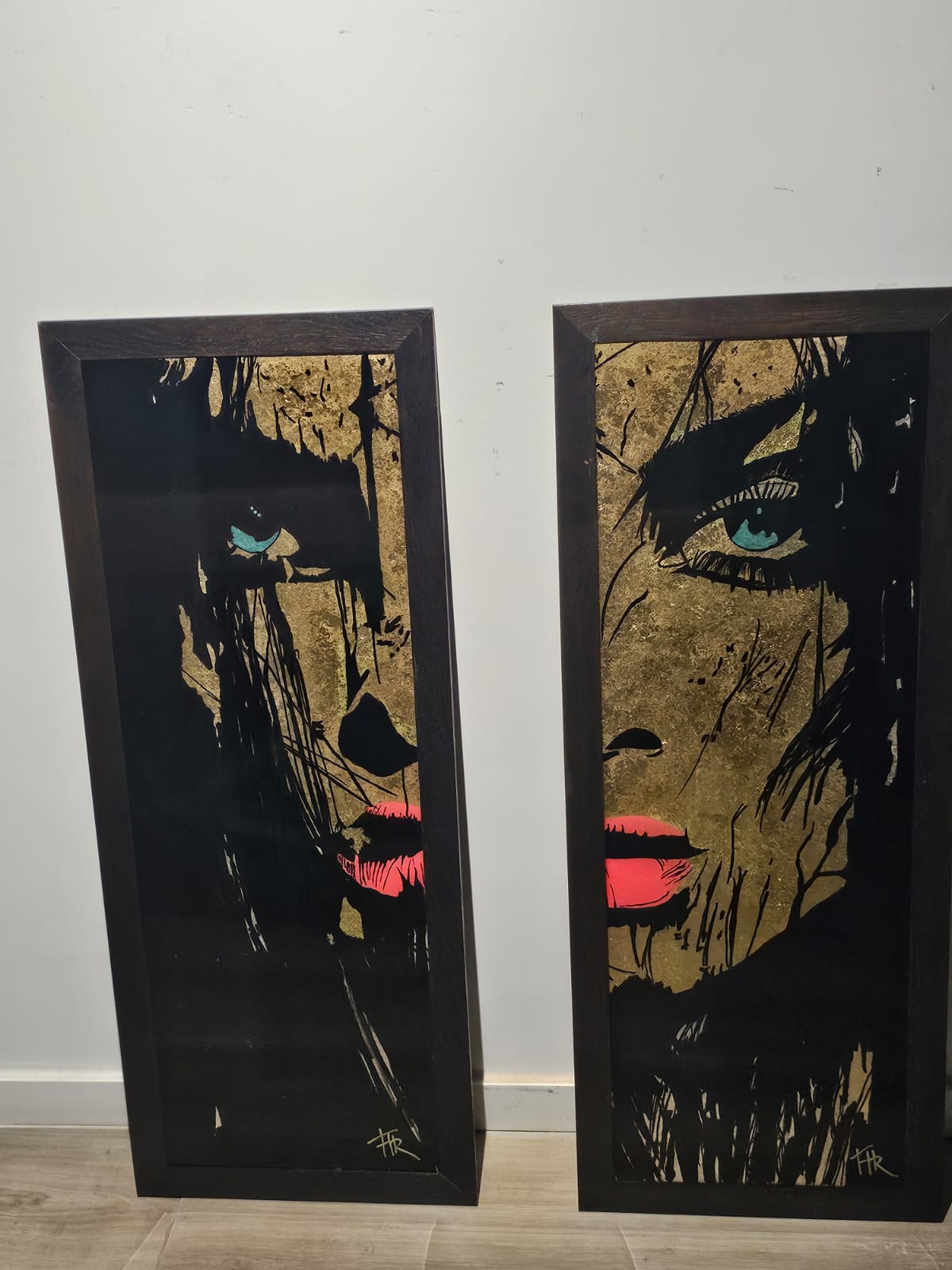 Technique:peinture acrylique et posca feuilles d’or et résine époxy