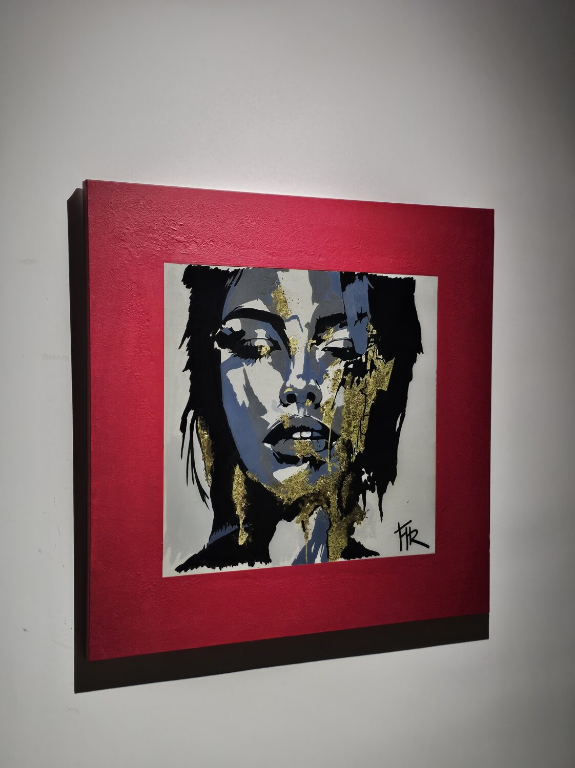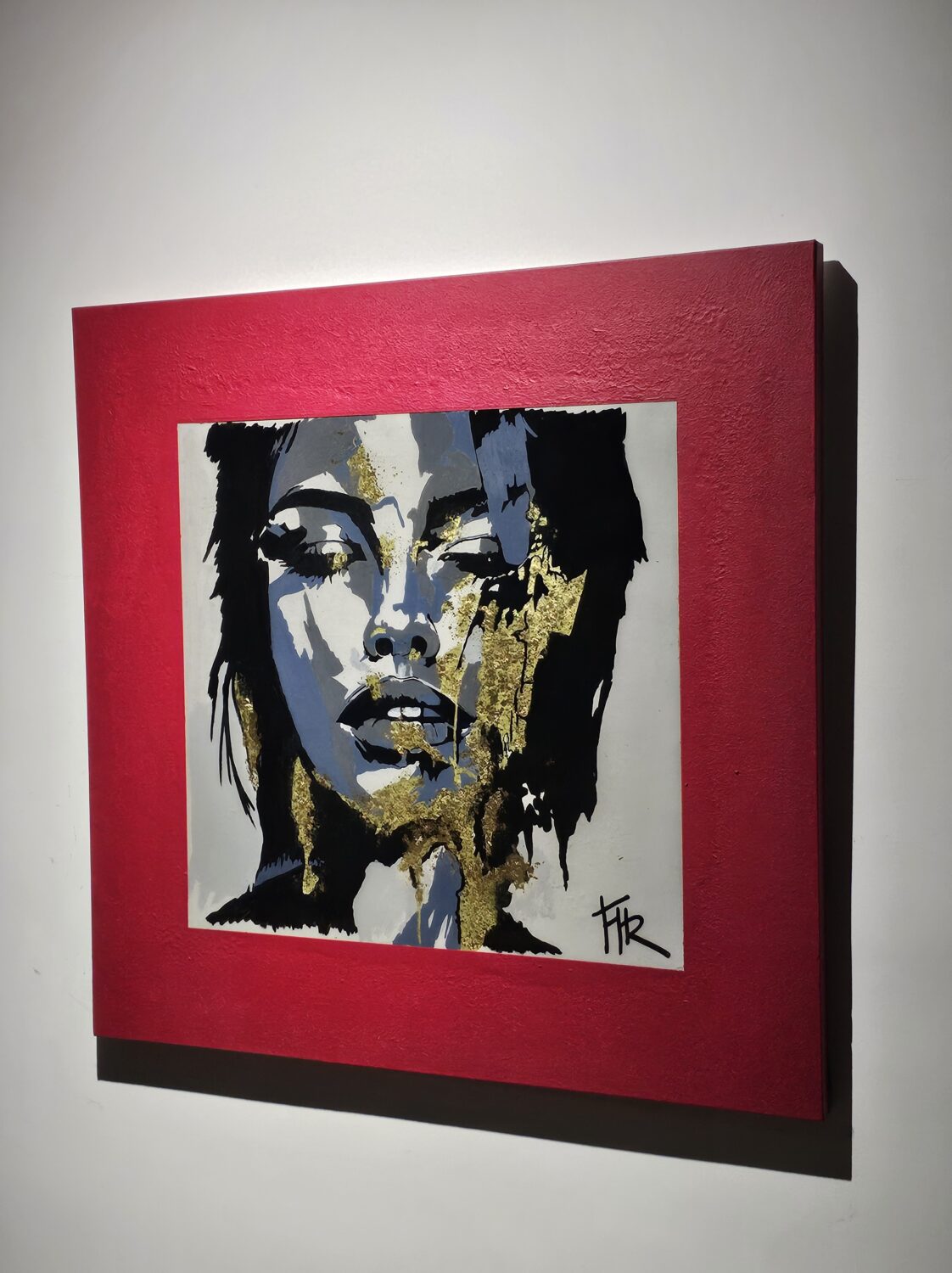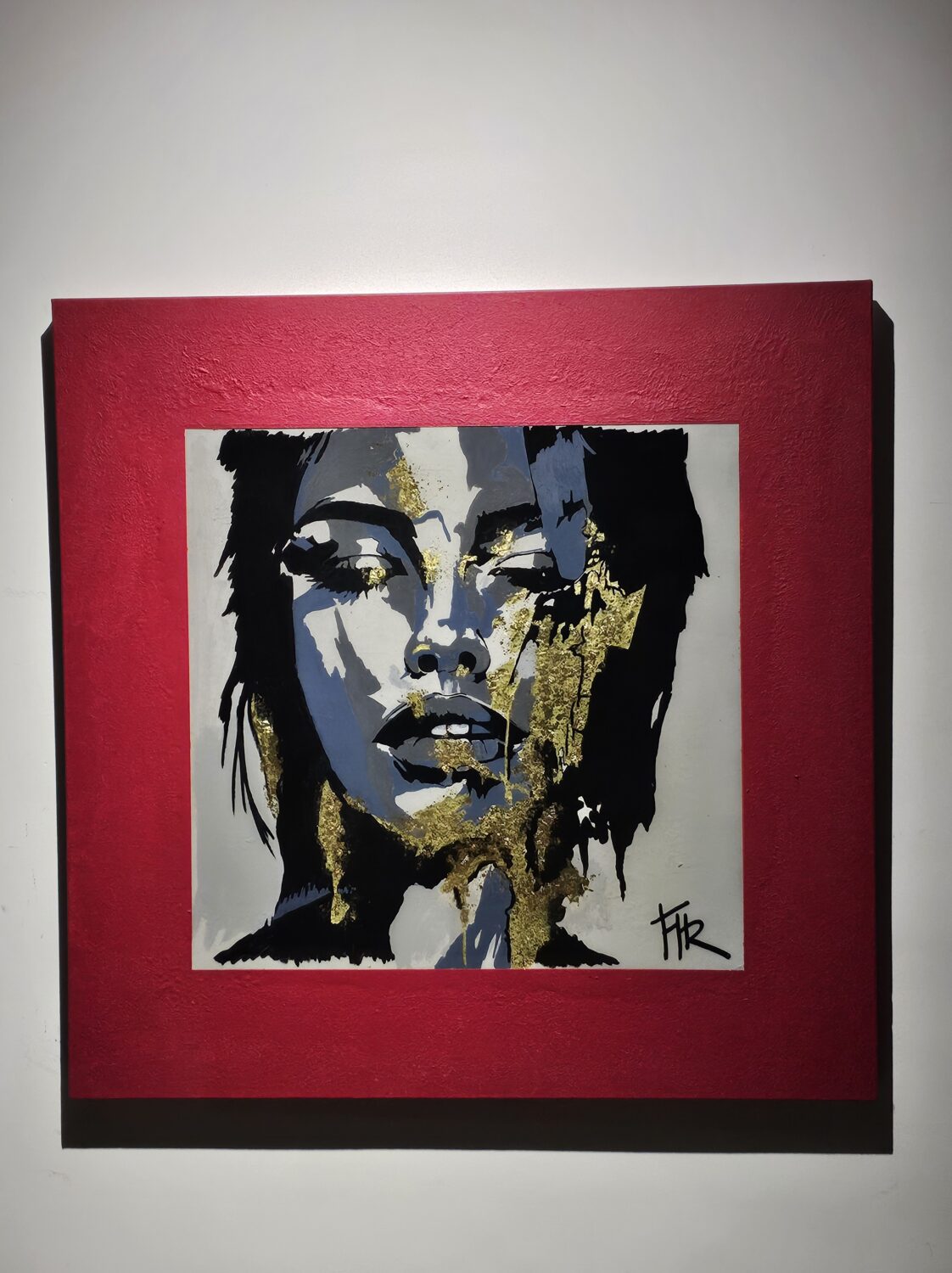 Acrylique et Posca sur toile tendue, résine époxy et feuilles d’or