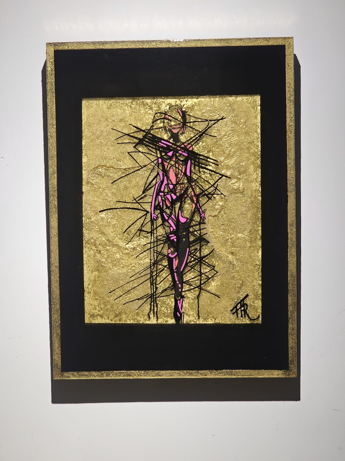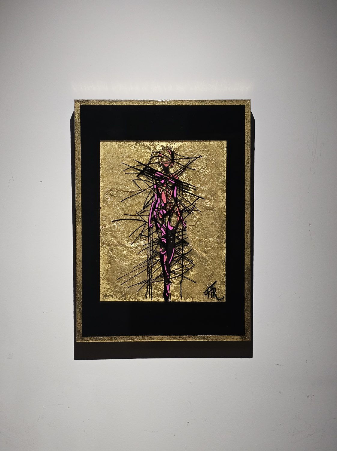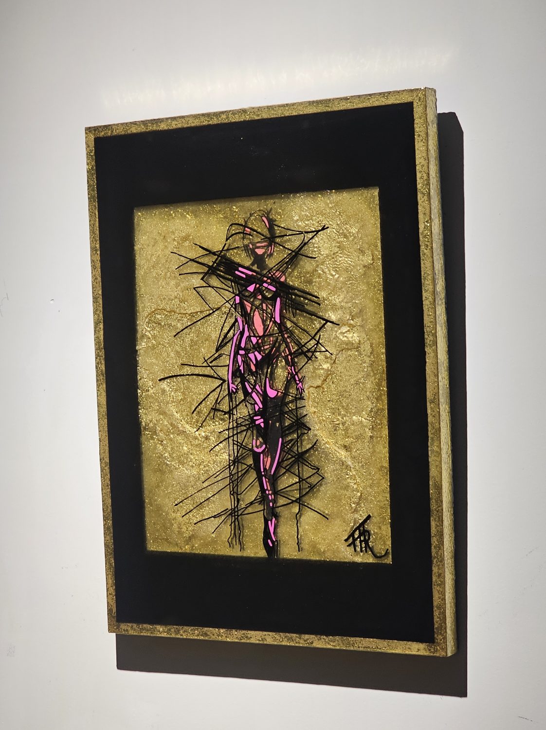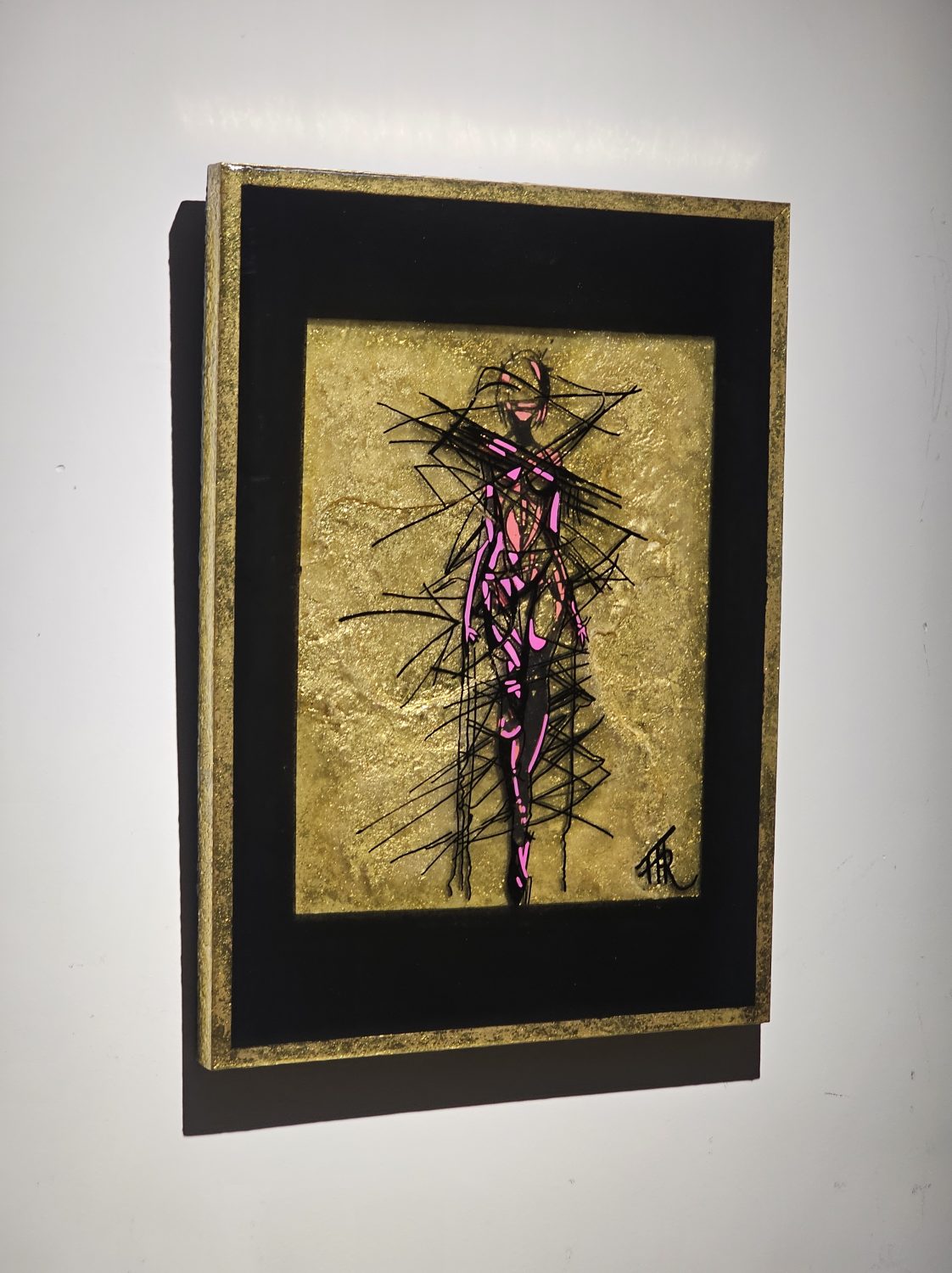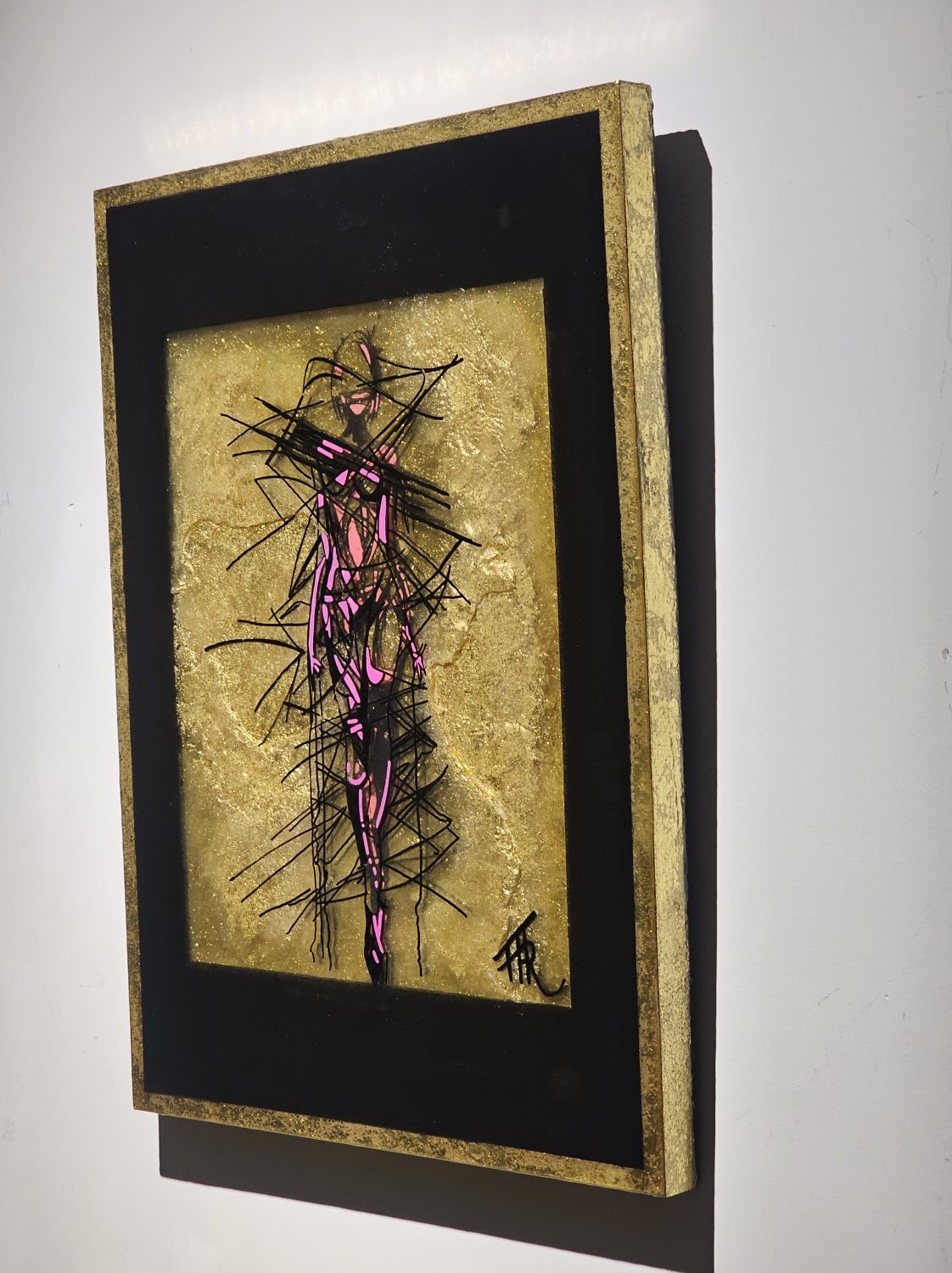 Technique: Acrylique et posca sur carton résine epoxy et feuille d’or