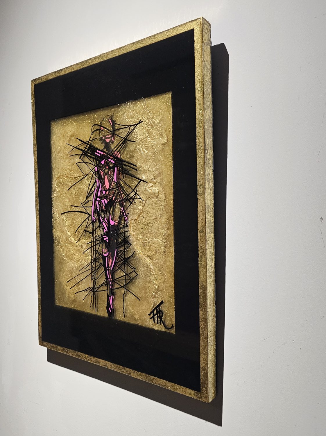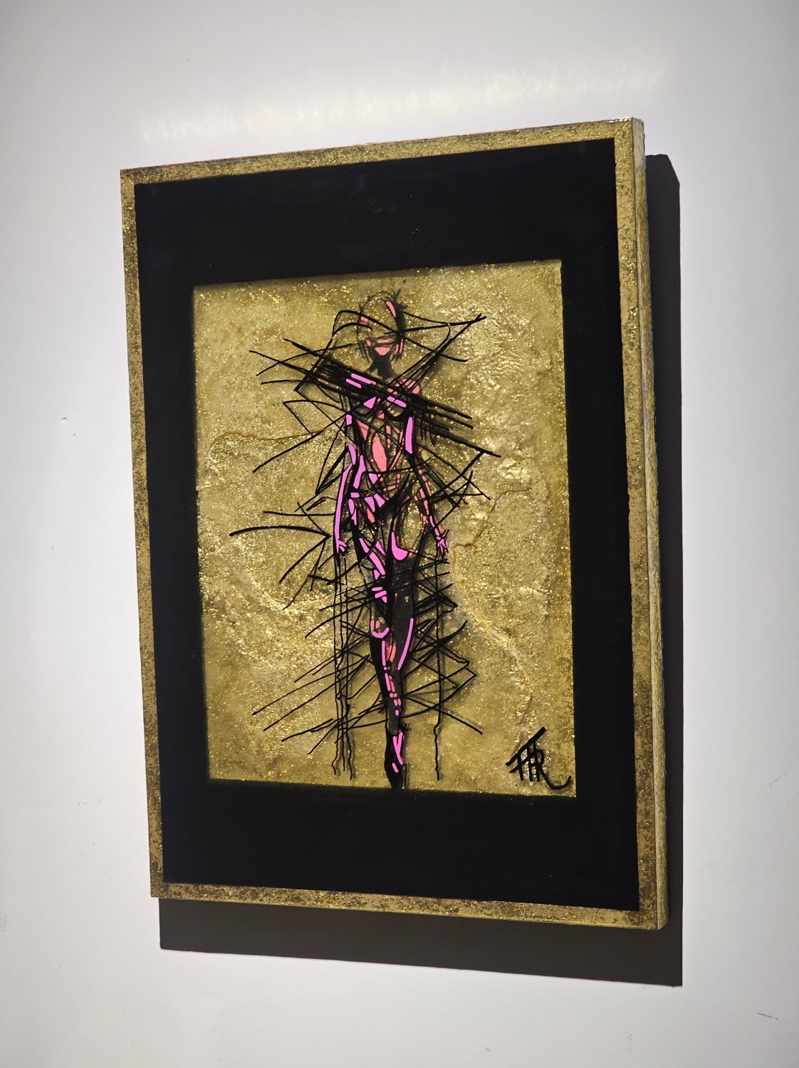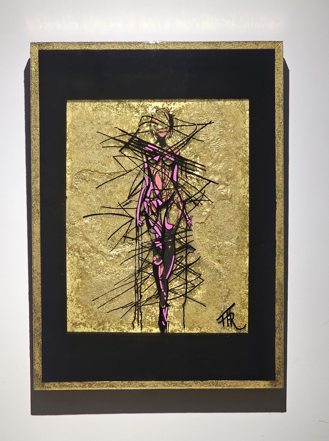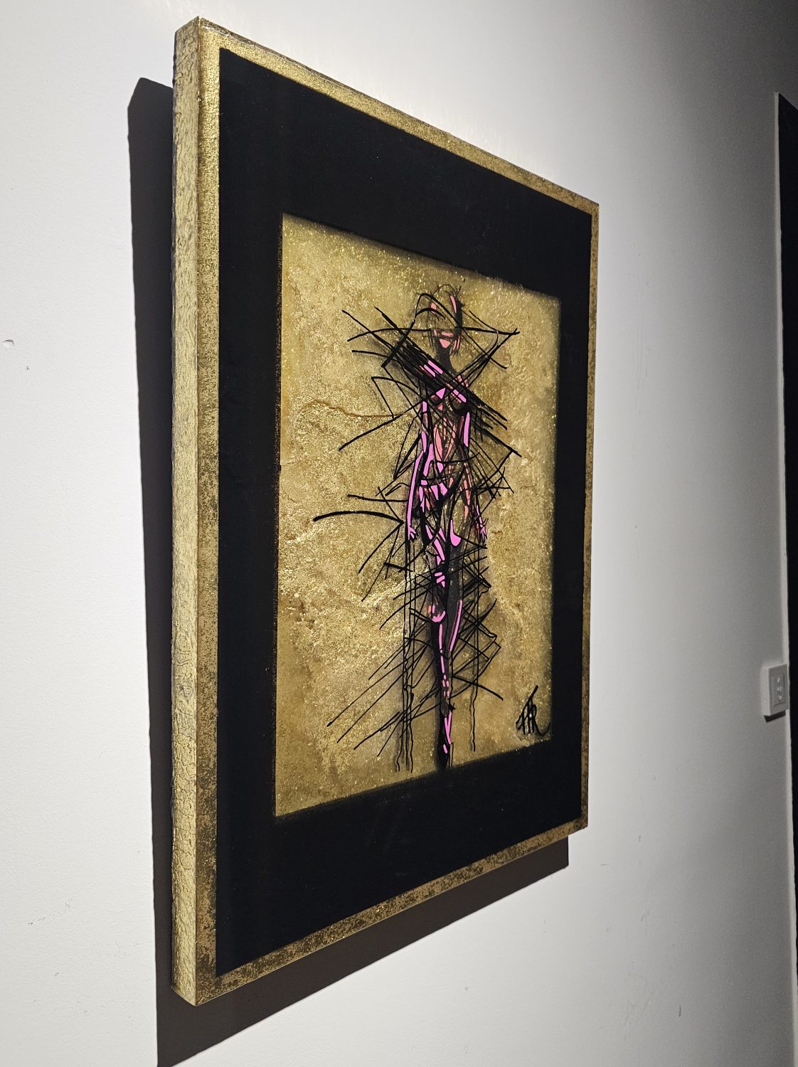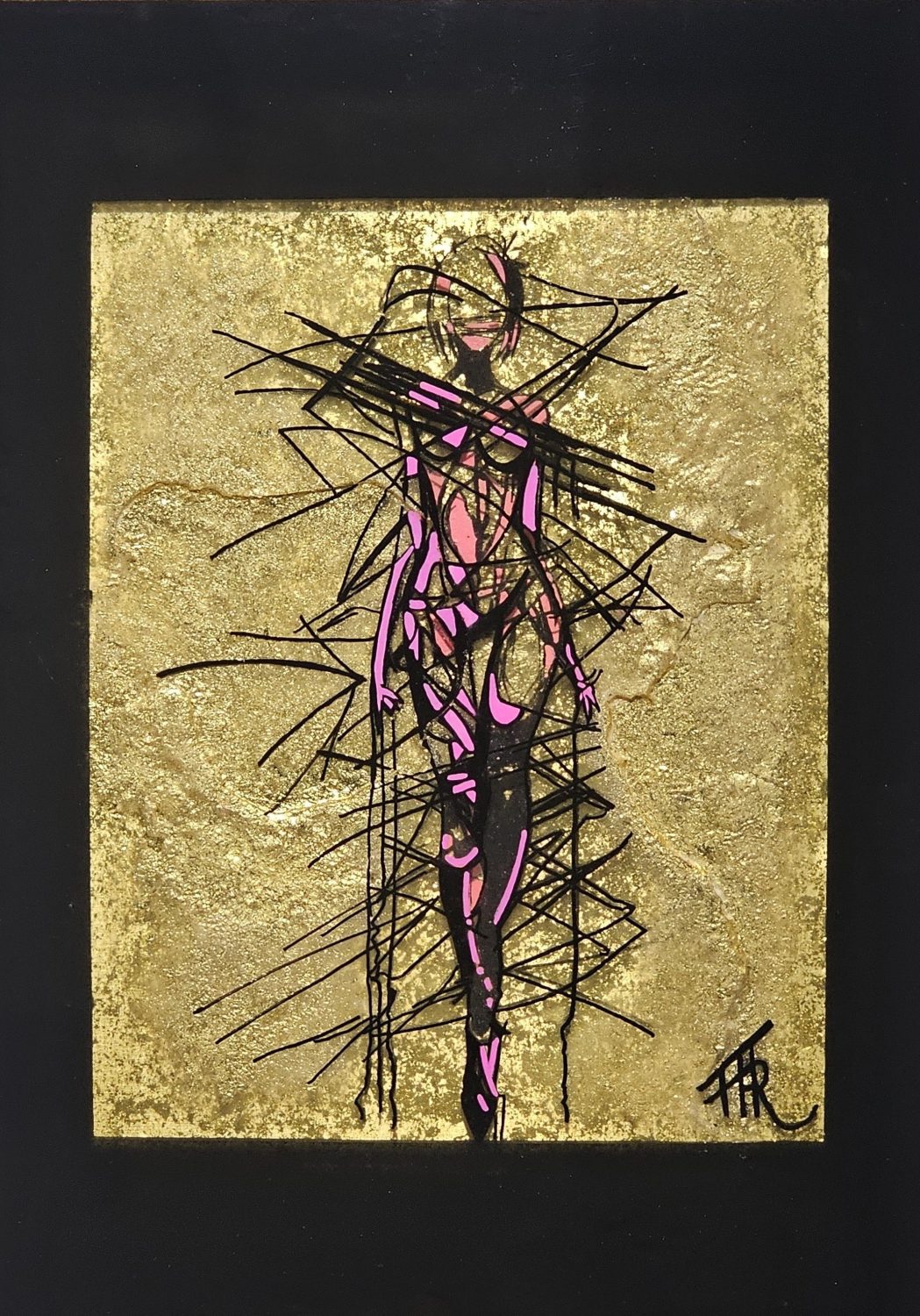 Technique: Acrylique et posca sur carton résine epoxy et feuille d’or